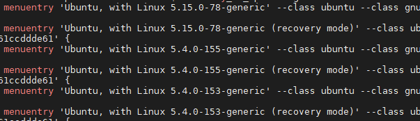 Но после перезагрузки… проблема усугубилась. Когда я ввожу «ip-адрес», отображается только [lo], а enp4s0 отсутствует. Сейчас пытаюсь откатить систему до версии ядра 5.4.0-155. Когда я запускаю «grep Menuentry /boot/grub/grub.cfg», я вижу, что в системе есть три версии ядра (исключая режим восстановления).